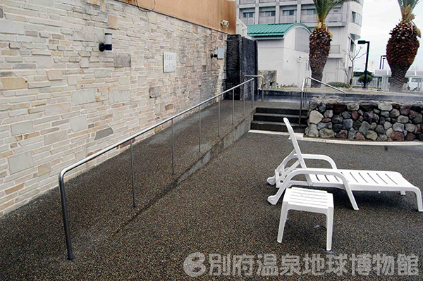 ===屋外健康浴、塩湯は男女共用で水具着用=== ★車いすのまま、屋外健康浴は全部入ることができます。 大浴場は脱衣室まで入ることができます。